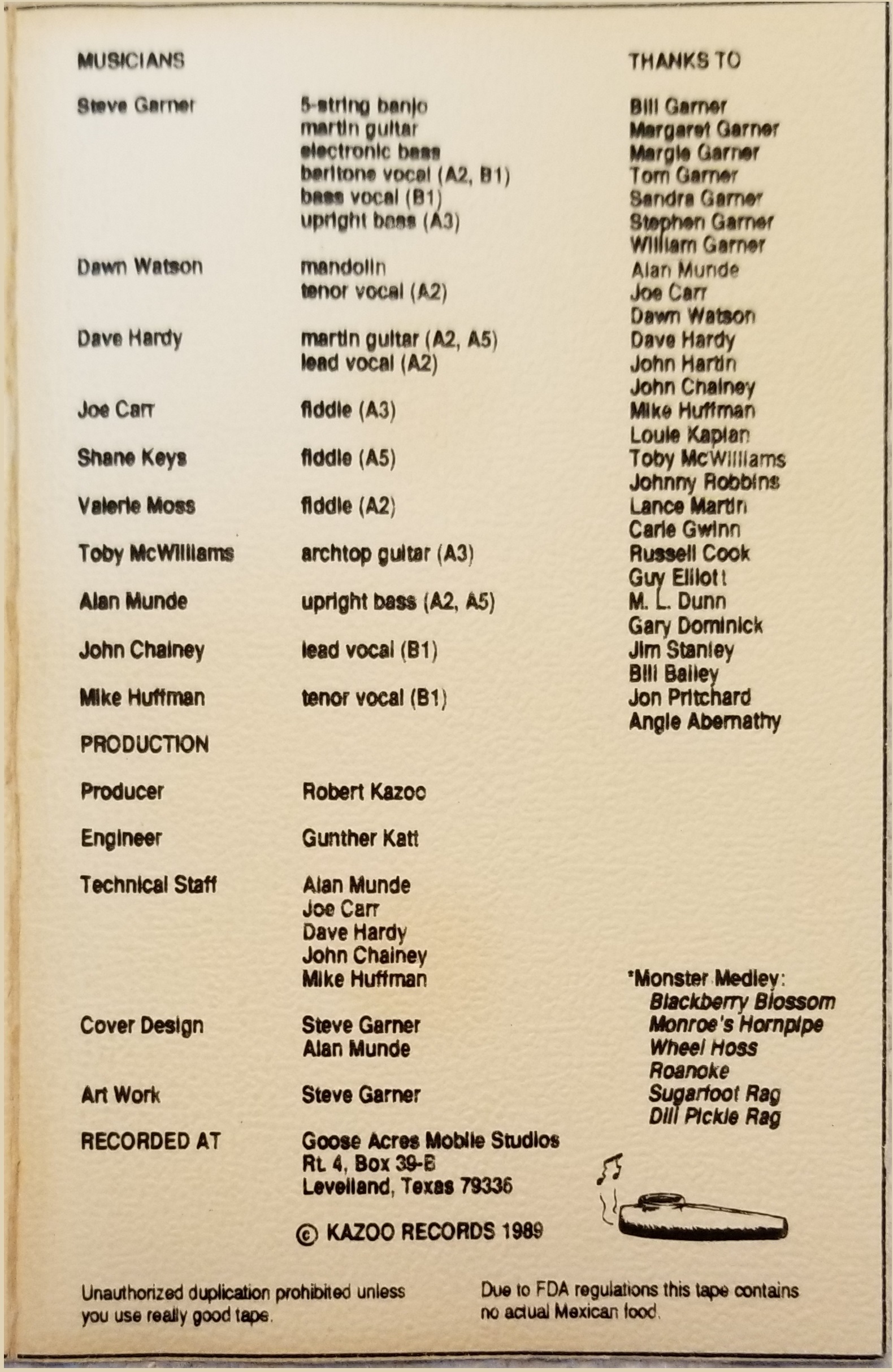 "Steve Garner's Banjo Enchilada" from 1989 -- Steve & friends at South Plains College -- Levelland, TX