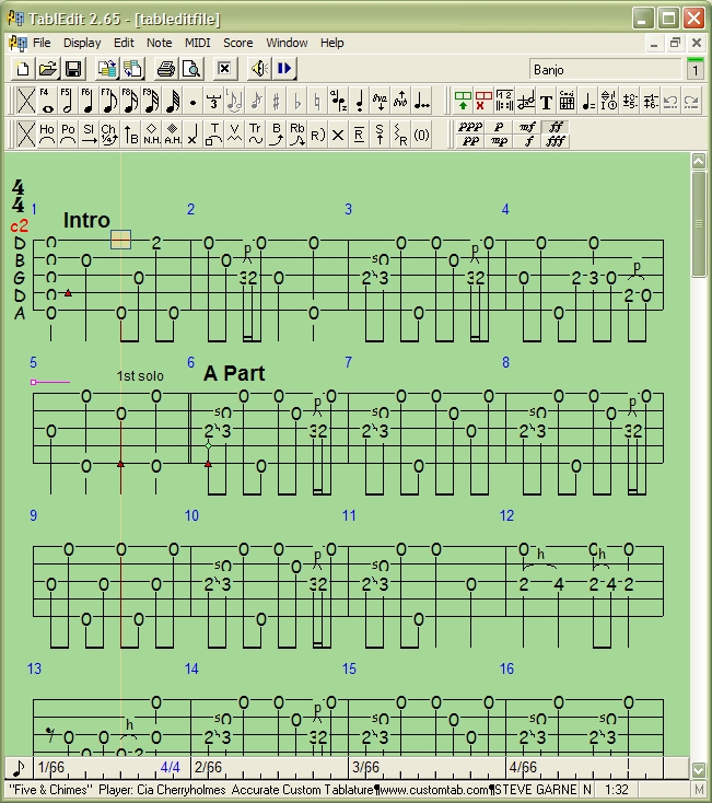 TablEdit file opened to edit in Tabledit -